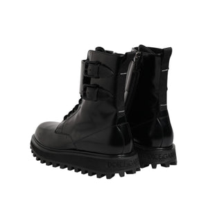 Dolce & Gabbana Black Leather Lace Up Mid Calf Boots Shoes
