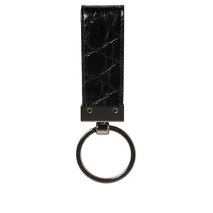 Dolce & Gabbana Black Leather Logo Metal Ring Keychain Holder Men Keyring