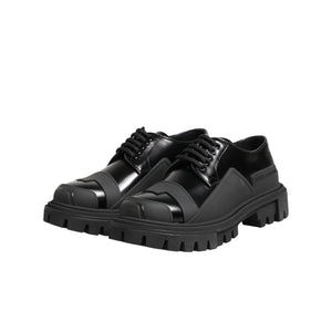 Dolce & Gabbana Black Patent Leather Trekking Derby Shoes