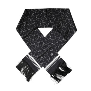 Dolce & Gabbana Black Patterned Skinny Fringes Shawl Scarf
