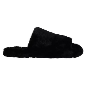 Dolce & Gabbana Black Polyester Faux Fur Mens Flats Sandals Shoes