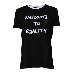 Dolce & Gabbana Black Printed Round Neck Top Cotton T-shirt