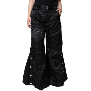 Dolce & Gabbana Black Quilted High Waist Women Wide Leg Pants