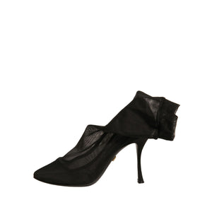 Dolce & Gabbana Black Silk Mesh Sock Style Heels Boots Shoes