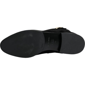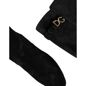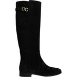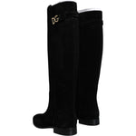 Dolce & Gabbana Black Suede Leather Knee High Boots Shoes