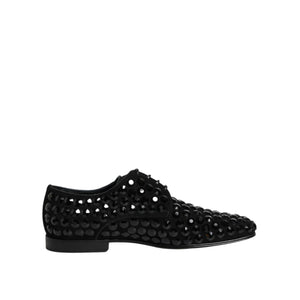 • Dolce & Gabbana Black Suede Strass Derby Formal Shoes