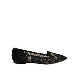 Dolce & Gabbana Black Taormina Lace Slip On Flats Shoes