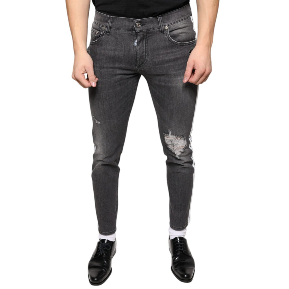 Dolce & Gabbana Black Tattered Cotton Skinny Men Denim Jeans