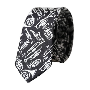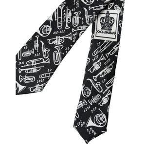 Dolce & Gabbana Black Trumpet Print Silk Adjustable Tie