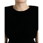Dolce & Gabbana Black Velvet Fitted Padded Shoulder Blouse Top