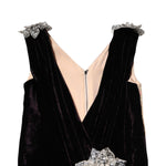 Gorgeous brand new, 100% Authentic Dolce & Gabbana A-line dress black velvet dress with a V-neckline and decorative, possibly beaded or embellished, floral appliques on the shoulders and at the waist.