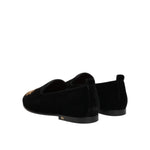 Dolce & Gabbana Black Velvet Gold Crown Mens Loafers Shoes