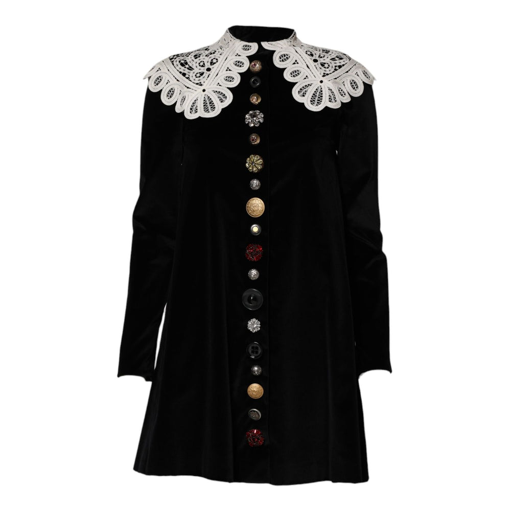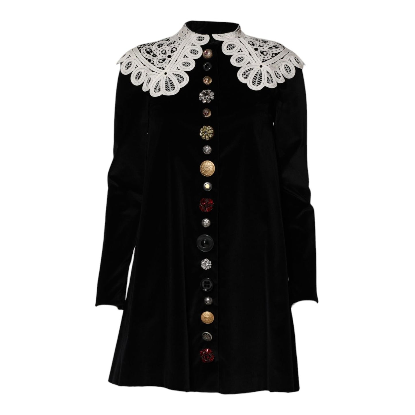 Dolce & Gabbana Black Velvet Lace Collared Embellished Dress
