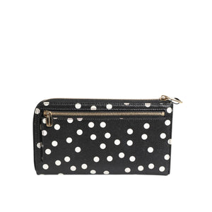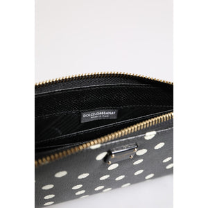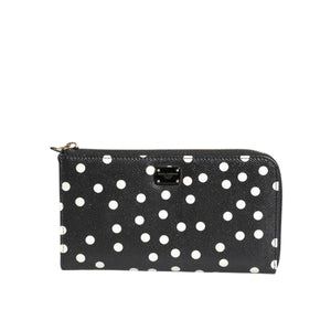 • Dolce & Gabbana Black White Dotted Leather Zip Around Continental Wallet