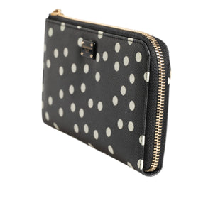 Dolce & Gabbana Black White Dotted Leather Zip Around Continental Wallet
