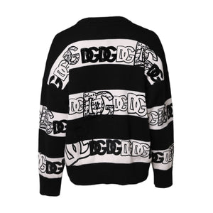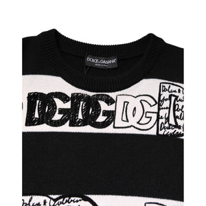 Dolce & Gabbana Black White Logo Print Wool Pullover Sweater