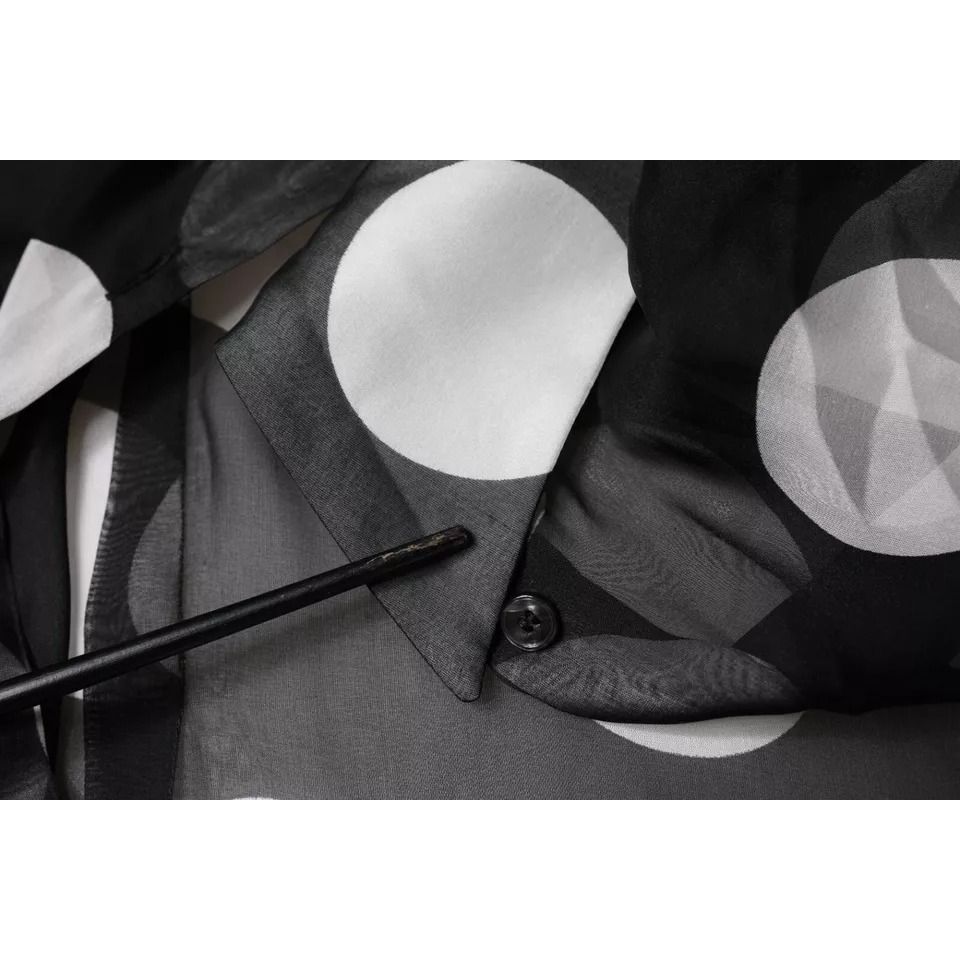Dolce & Gabbana Black White Polka Dots Silk Long Sleeves Top