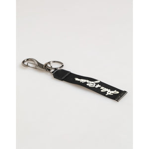 • Dolce & Gabbana Black White Polyester DG Logo Silver Men Keychain Keyring