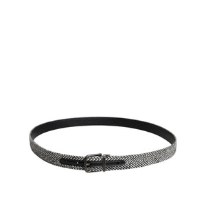 Dolce & Gabbana Black White Silver Tone Metal Buckle Belt
