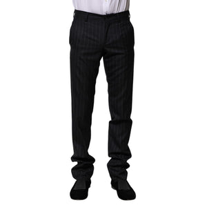 Dolce & Gabbana Black Wool Striped Formal Pants
