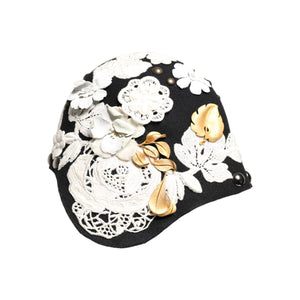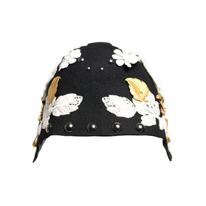 • Dolce & Gabbana Black Wool White Floral Gold Leaf Cloche Hat