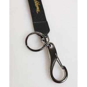 Dolce & Gabbana Black Yellow Polyester DG Logo Silver Keychain Keyring