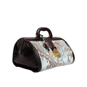 Dolce & Gabbana Blue Brown Leather Floral Jacquard Travel Handbag Bag