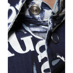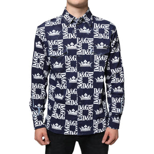 Dolce & Gabbana Blue Crown Logo Print Slim Fit Cotton Shirt