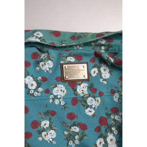 Dolce & Gabbana Blue Floral Cotton Button Down Denim Shirt