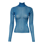 • Dolce & Gabbana Blue See Through Turtleneck Long Sleeves Top