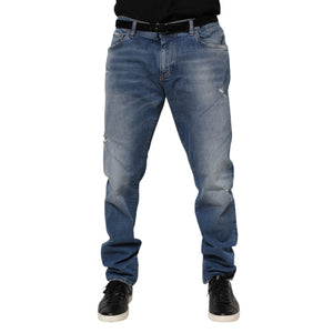 Dolce & Gabbana Blue Washed Cotton Logo Plaque Denim Jeans