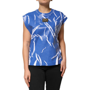 Dolce & Gabbana Blue White Cotton Logo Plaque Women Tank Top