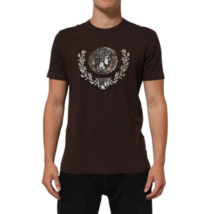 Dolce & Gabbana Brown Coin Laurel Print Men Crew Neck T-shirt with intricate regal coin and laurel design on premium cotton fabric.