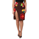 Dolce & Gabbana Brown Floral High Waist Side Slit Skirt