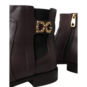 Dolce & Gabbana Brown Leather AMORE Flats Ankle Boots Shoes