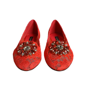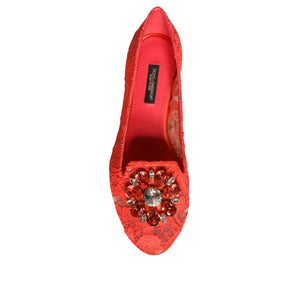 Dolce & Gabbana Coral Lace Crystal Ballet Flats Loafers Shoes
