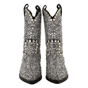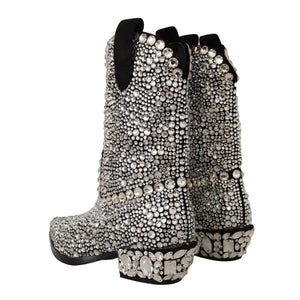 Dolce & Gabbana Black Suede Strass Crystal Cowgirl Boots