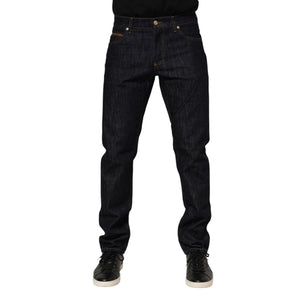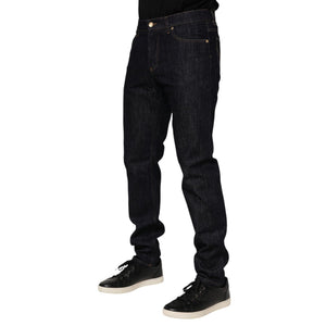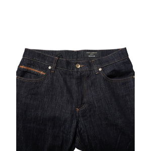 Dolce & Gabbana Dark Blue Cotton Logo Plaque Men Denim Jeans