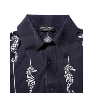 Dolce & Gabbana Dark Blue Sea Horse Collared Polo T-shirt
