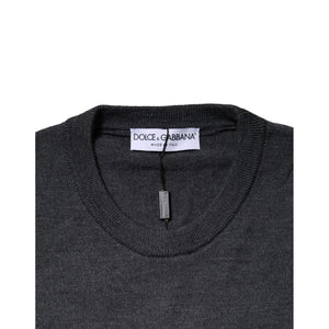 • Dolce & Gabbana Dark Gray Wool Crew Neck Sweatshirt Sweater