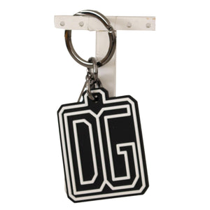 Dolce & Gabbana Black White DG Rubber Logo Silver Ring Keychain