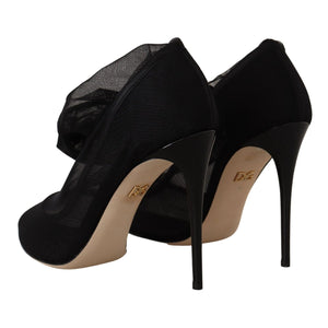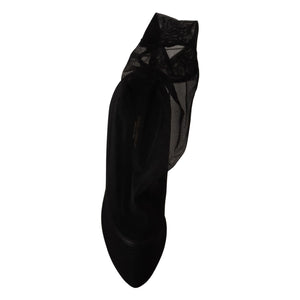 Dolce & Gabbana Black Stretch Tulle Stretch Boots Shoes