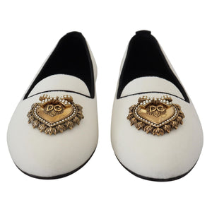 Dolce & Gabbana White Velvet Slip Ons Loafers Flats Shoes