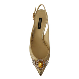 Dolce & Gabbana Gold Crystal Slingbacks Pumps Heels Shoes