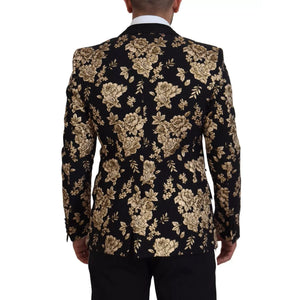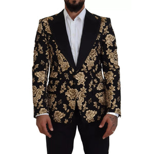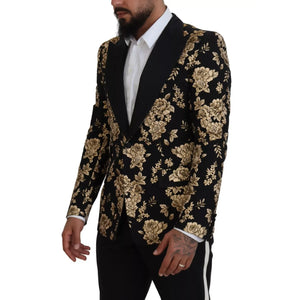 Dolce & Gabbana Gold Black Floral Embroidered Jacket Blazer