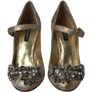 Dolce & Gabbana Gold Jacquard Crystal Mary Janes Pumps Shoes