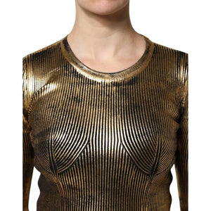 Dolce & Gabbana Gold Round Neck Long Sleeve Pullover Top