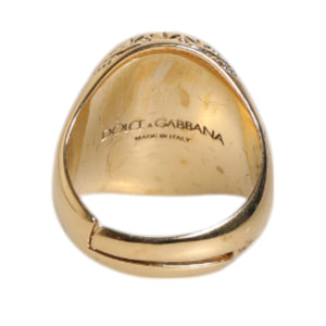 Dolce & Gabbana Gold Tone Engraved Logo Two Color Jewelry Ring