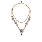Gorgeous, 100% Authentic Dolce & Gabbana gold-tone necklace. Decorated with colorful charms featuring a floral motif. Encrusted with purple decorative elements.