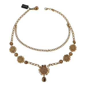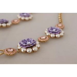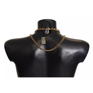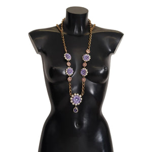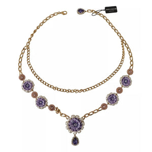 Gorgeous brand new with tags, 100% Authentic Dolce & Gabbana gold-tone necklace. Decorated with colorful charms featuring a floral motif. Encrusted with purple decorative elements.
